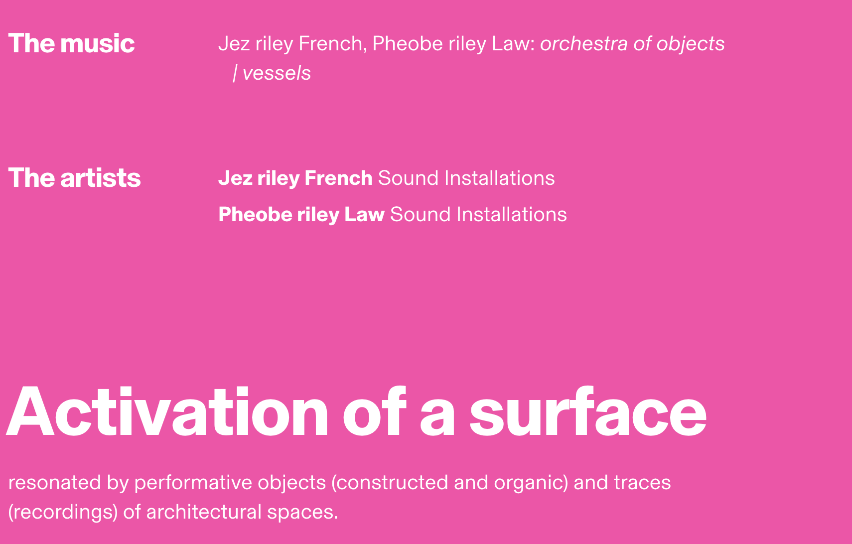 'for this set of 3 new pieces Jez spent several nights alone in the Tate Modern building, listening for hours, capturing moments when the surfaces of the structure resonated or the sounds normally beyond our range of hearing offered up particularly evocative, unscripted compositions'