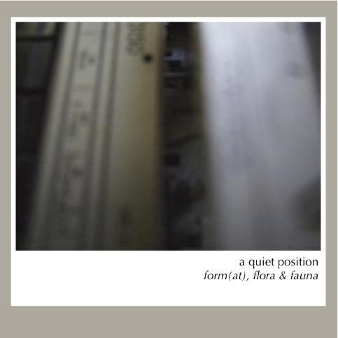the 'a quiet position' blog (formally named 'in place'' is a blog that explores various aspects of field recording....from equipment reviews to the influential 'four questions' series of interviews with fellow recordists / artists / composers.