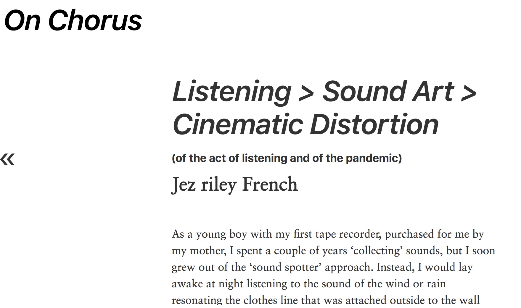listening > sound art > cinematic distortion' - published as part of the 'on chorus' project